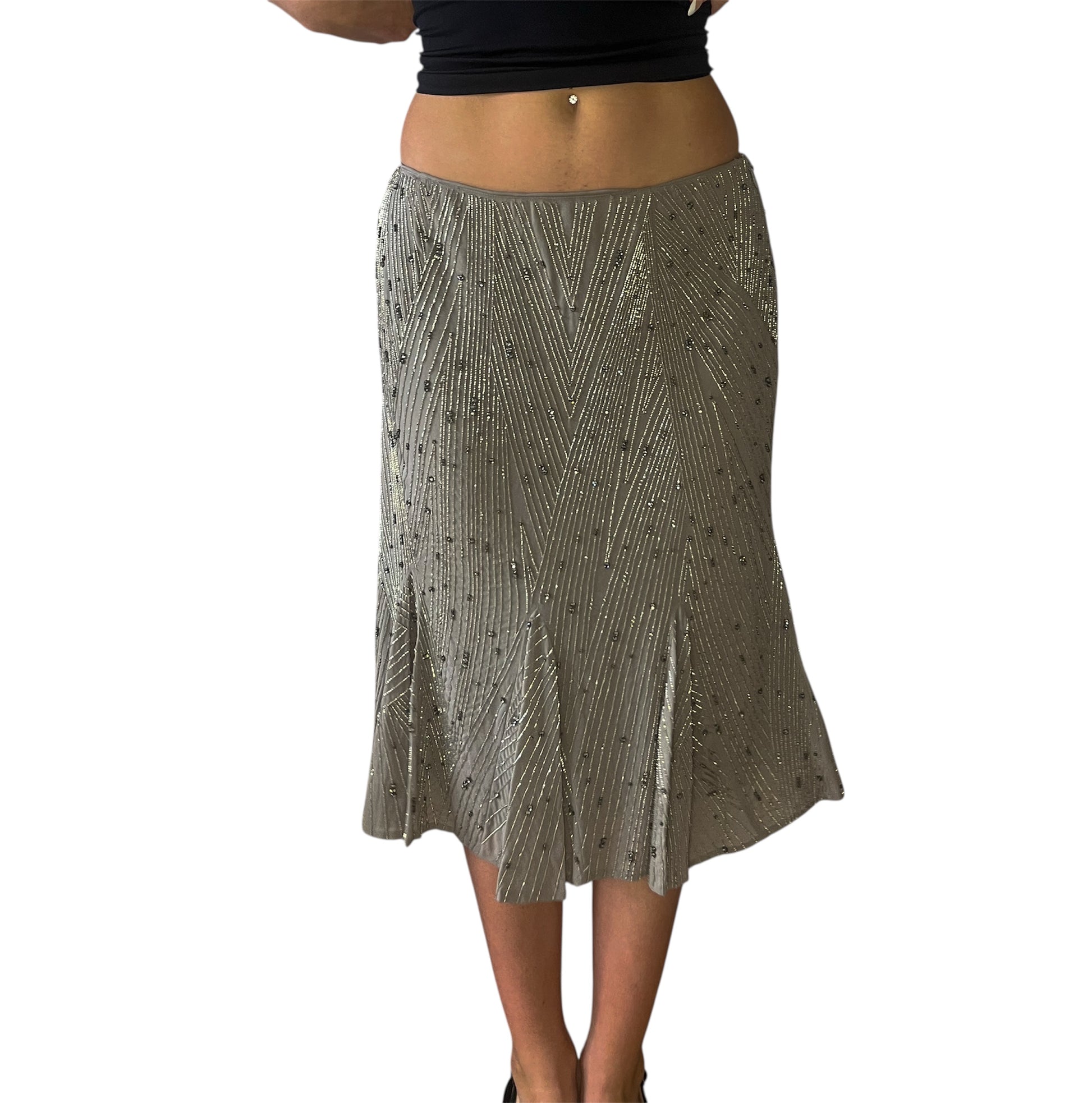 Brown/grey toned sequinned embroidered skirt by Ralph Lauren for their black label line. Featuring an Art Deco style sequin pattern.
